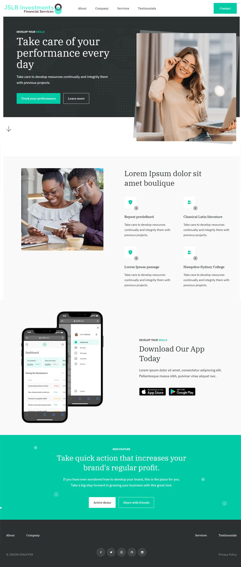 This is a demo of a responsive AI-enhanced character-driven professional services website package by Jason Stauffer, a Craft CMS Developer in Reading, PA.